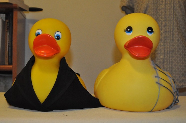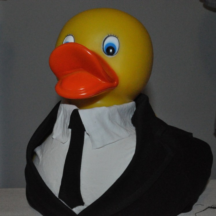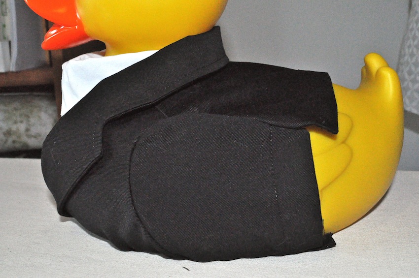 Ok, so a duck needs a suit. If my friend hadn’t specified what kind of suit (or the character he would be portraying) you can bet he would have been clothed in a tweed jacket, a bow tie, and a fez. Cuz its cool, and that is how I tend to think. Making a mental note for next year…
