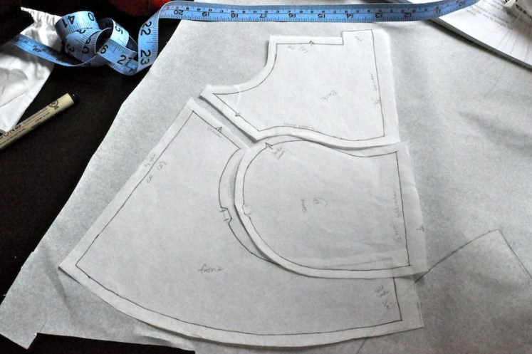 I traced the pattern pieces onto another sheet of medical exam table paper and added seam allowances. What do you use for tracing paper? Medical exam table paper was a suggestions by Pennie, and seriously, it is affordable and works well.