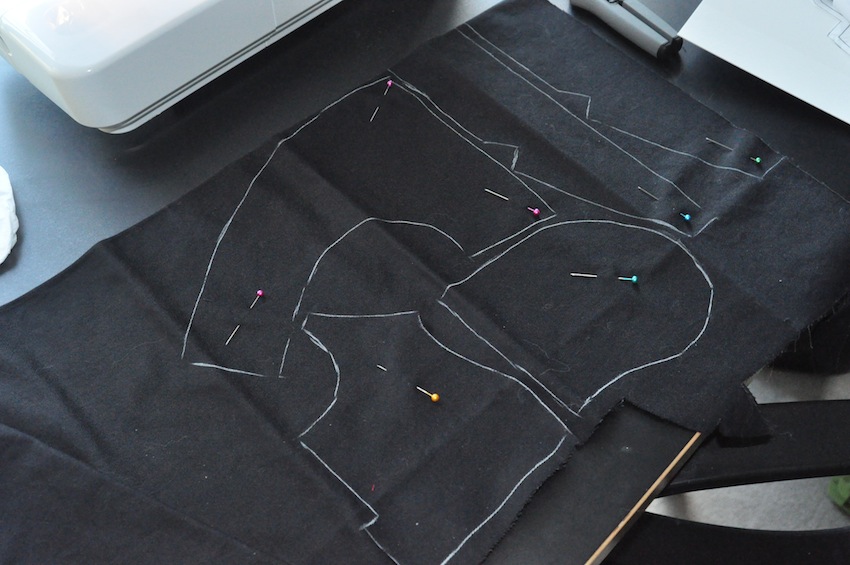 I don’t know how you prefer to cut out fabric, but for the last two years I have been pinning the pattern to the fabric and cutting them out. Then my mom reminded me that she prefers to trace around the patterns (she also copies her altered patterns to card stock for durability) and cut along the chalk lines. I think I prefer this method.