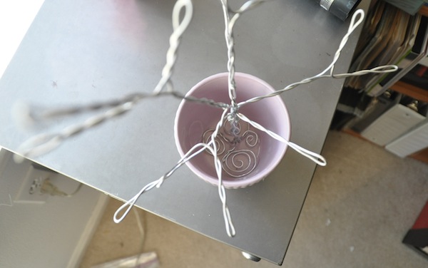 But wait! Like real trees in springtime, my wire tree has been reborn. I was cleaning the mess of clothes, shoes, and costumes in the closet and felt compelled to take another stab at the jewelry tree. I looked at some of the joints to identify the weak parts, where the weight caused the most bending. I assumed I would need to add more wire to hold sections together. I know the “lightbulb” is an overused cliche for sudden ideas, but as if someone had flipped on the light switch, I instantly saw the solution.