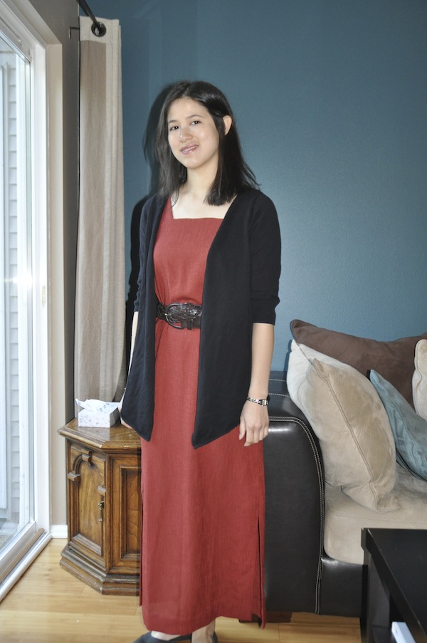 Worn with: thrifted belt (!!) and black drape cardigan (modified hand-me-down)
