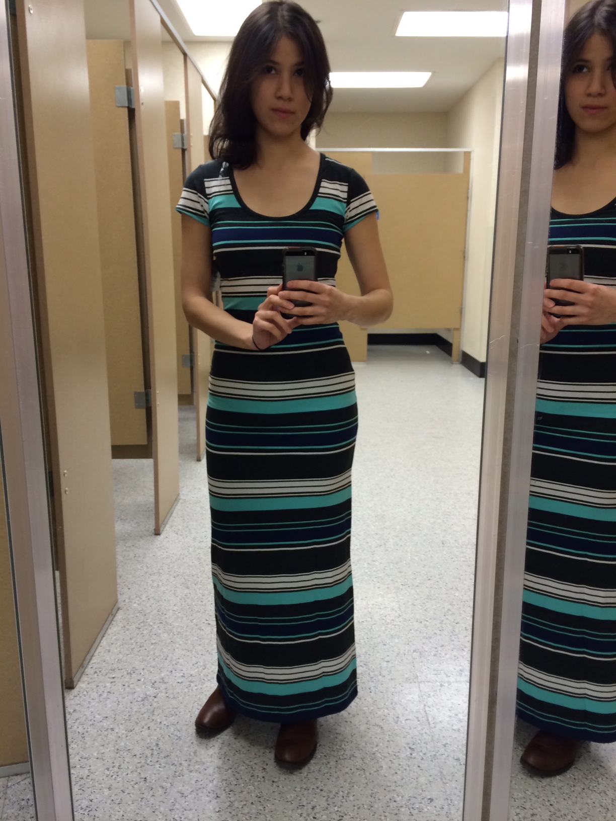 Following a Sunday lunch meeting, I stopped by Ross and Marshall’s to try on maxi dresses. It seems everyone has one or an online tutorial on how to make one, and I can’t deny the convenience of a soft jersey dress that layers easily. I just had NO idea what style to go with. One of my first Wardrobe Architect epiphanies was about what clothing silhouettes I gravitate toward and what looks best on me. I hoped that at least ONE maxi dress would help me decide which online tutorial to use.