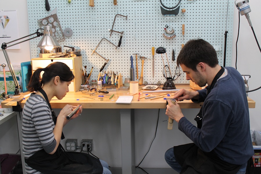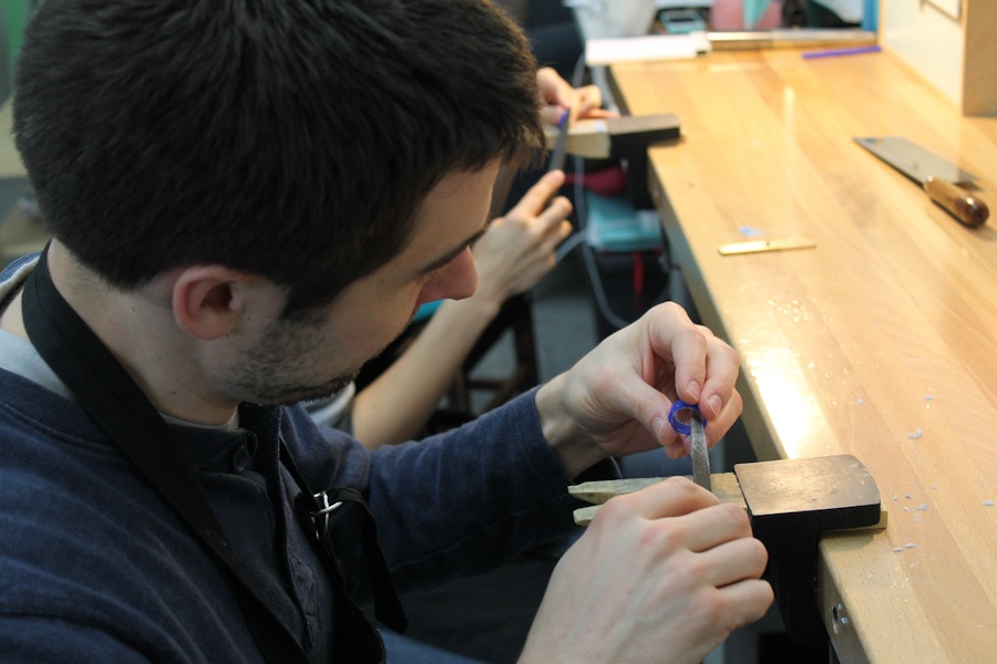 During the resizing phase of the session we were chatty. As soon as Greg and I began carving into the final wax rings the workshop went silent. We were both so focused on not messing up. (Thankfully if you do crack the ring or file away too much, more wax can be added and melted into place.)
