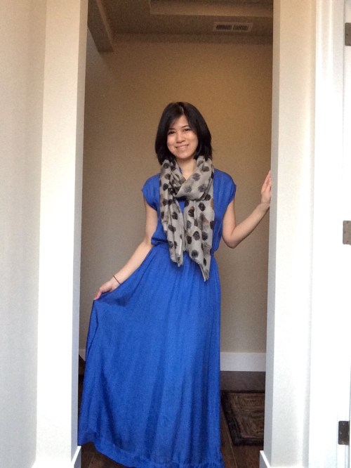 There are so many of my mom’s clothes that I wish I had, but alas, none of them made it over here from Hong Kong. That dress looks fantastic though — it toes the line perfectly between loose pajama and loose comfy — I’d love a look at the top without the scarf!