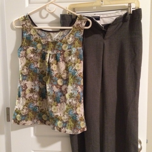 Waking up feeling pain in your abdomen and lower back dramatically dampens enthusiasm for MeMadeMay. I wore my green floral tunic over a pair of comfy RTW slacks.