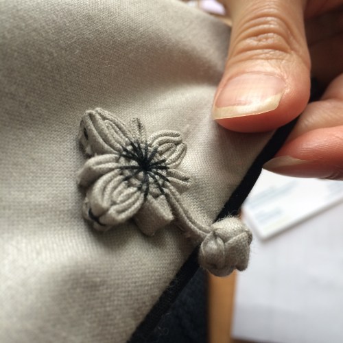 My Po-Po also had strong steady hand skills. She made the ornamental buttons from bias strips. I wish I knew where she learned this – was it from her own family in China or from a community member after immigrating to the US? All of my cute toddler silk vests had these types of buttons. She did pass on the technique to me, but I am out of practice at the moment.