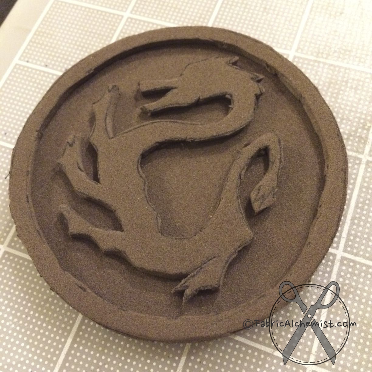 - Continue to heat and using a tool (screwdriver, chopstick, sculpting tool, or burnishing tool) to tuck the worbla into the edges of the dragon embossing and smooth the sides.
