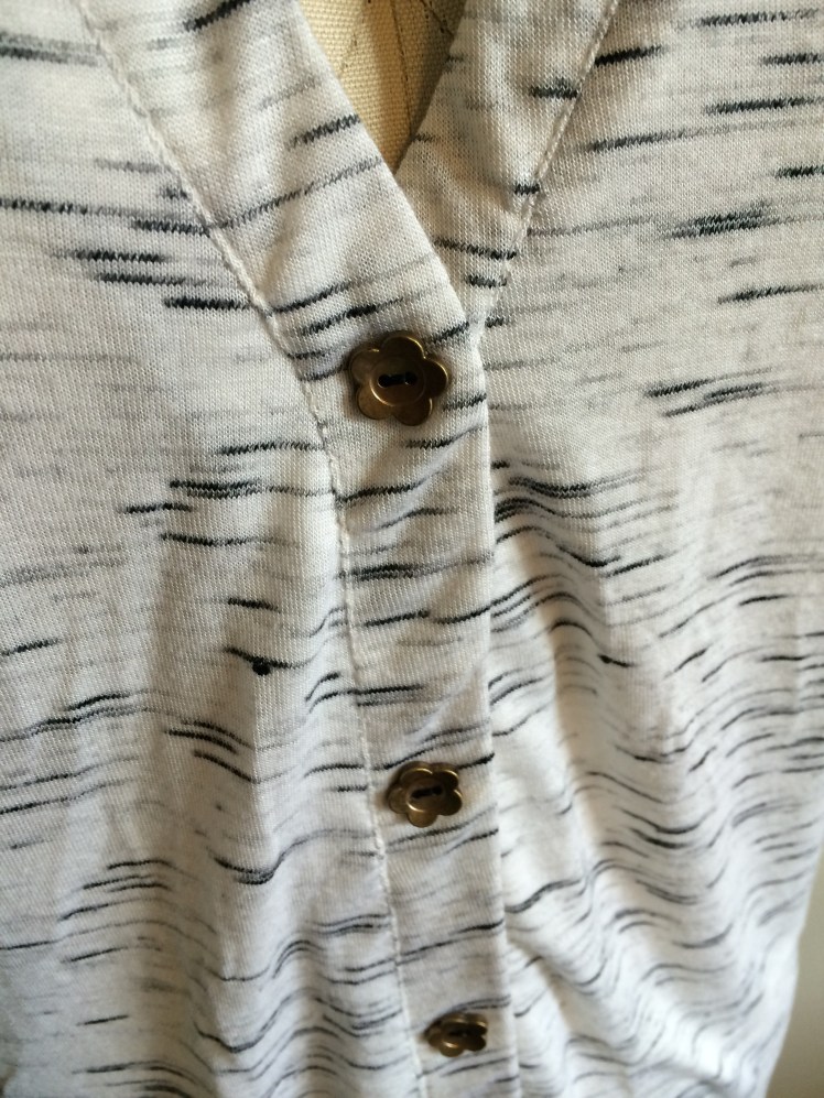 - I made a fake buttoned placket – in that it doesn’t unbutton. I sewed the buttons through both layers. The garment is easy enough to pull over my head and the thought of buttonholes on this delicate fabric… I just wanted to finish. And the sewalong said I could! 🙂