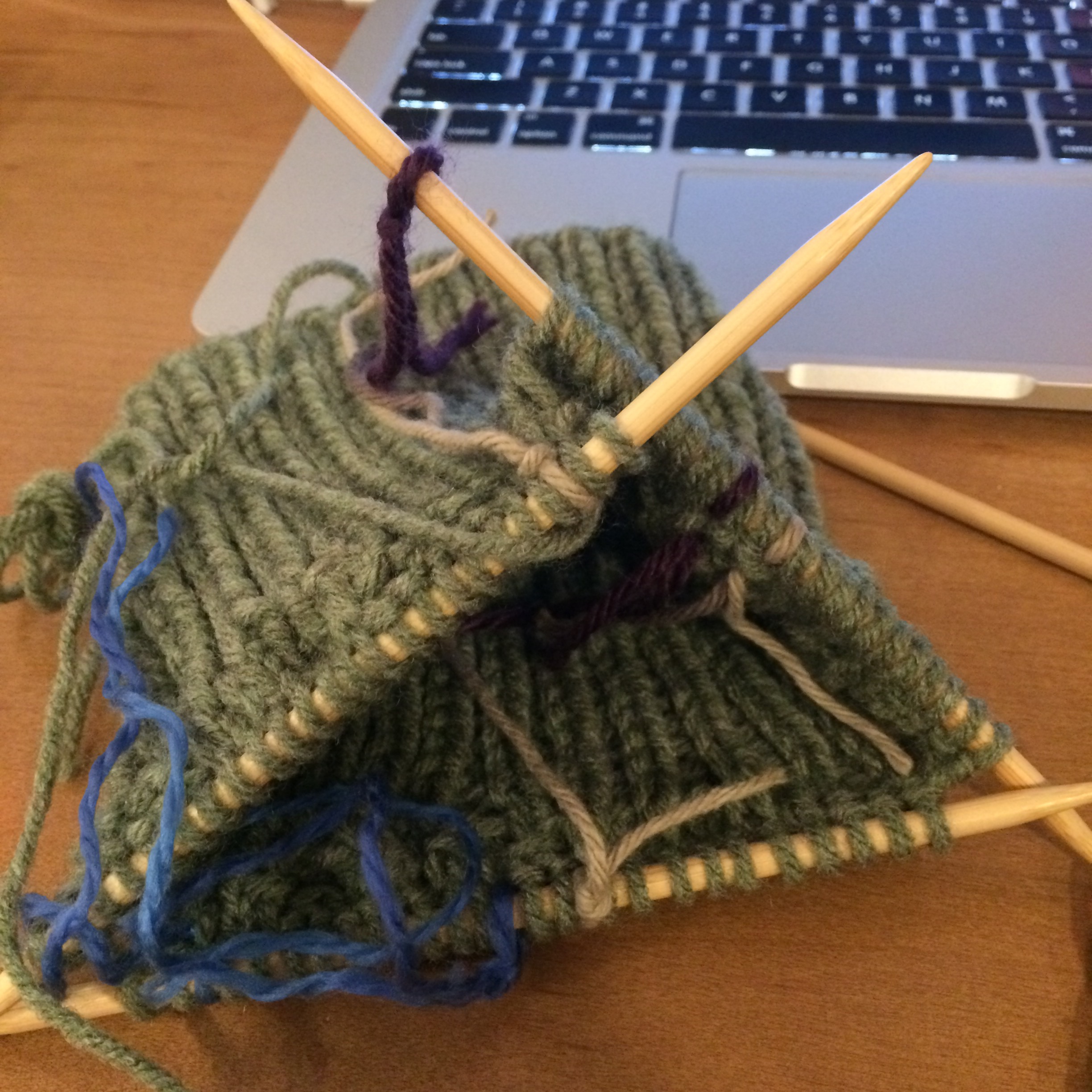 I have never had this many knitting projects cast on at the same time. I was impatient. There were too many ideas floating around my head. Too many yarns in my stash. Plus a couple projects were going to require more space and focus than I had on the bus rides to work. So rather than devote time to finishing those at home…I spent time searching Ravelry of new projects to knit on the bus.