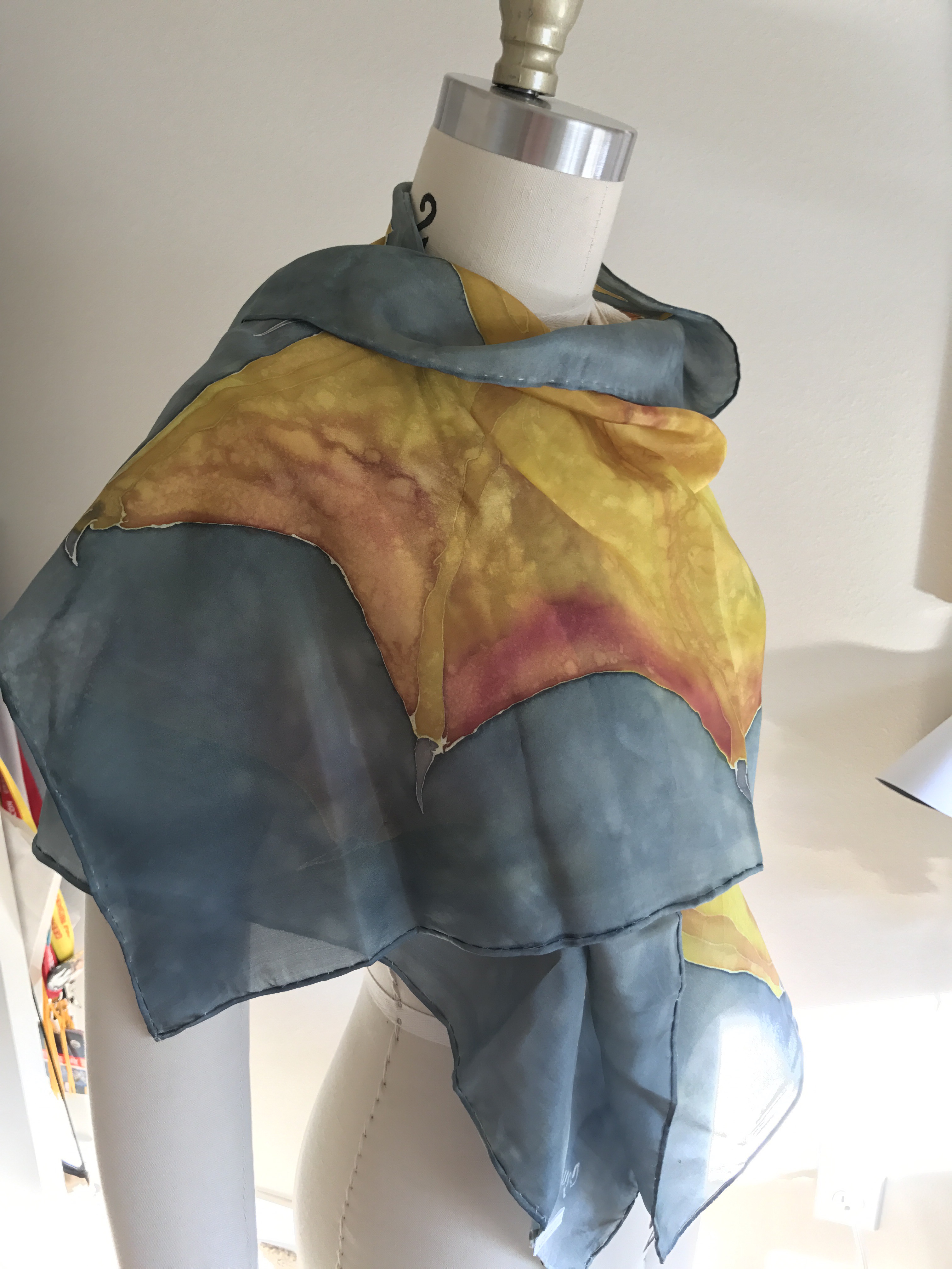 The scarf below was a Christmas gift from my mother-in-law. It is a hand-painted silk scarf that she commissioned from a local PNW artist, Sage Hen Designs.