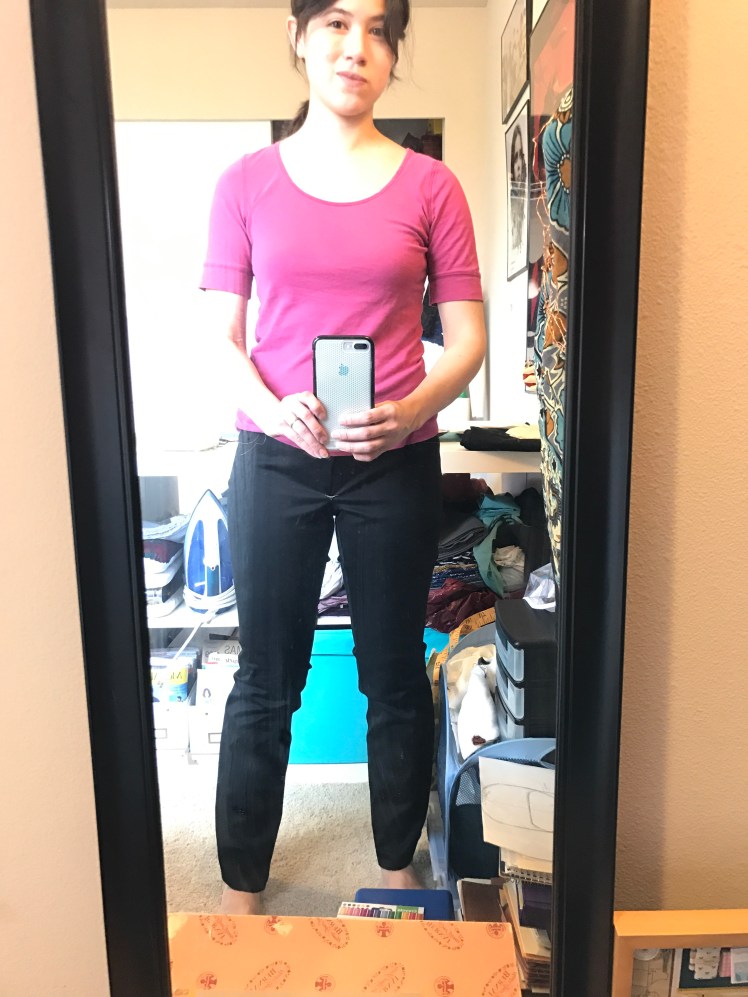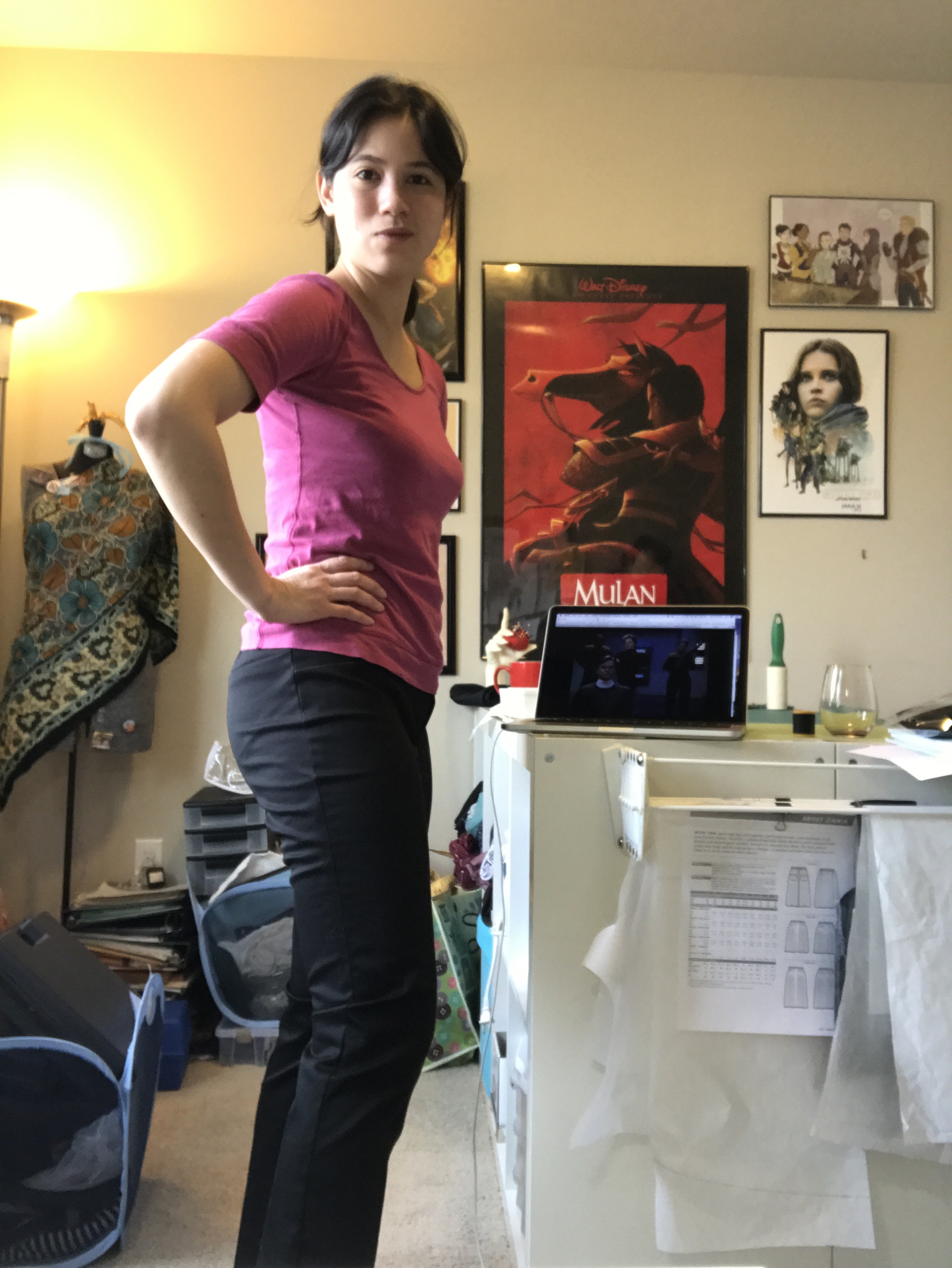 In 2015, Gillian dared me to finish the Ginger Jeans and I managed to make a non-stretch muslin in January 2016. This confirmed that the size I chose to make wasn’t too far off and that pants weren’t as scary as I thought they would be. Nevertheless, this project stalled when I started feeling insecure about my changing weight.