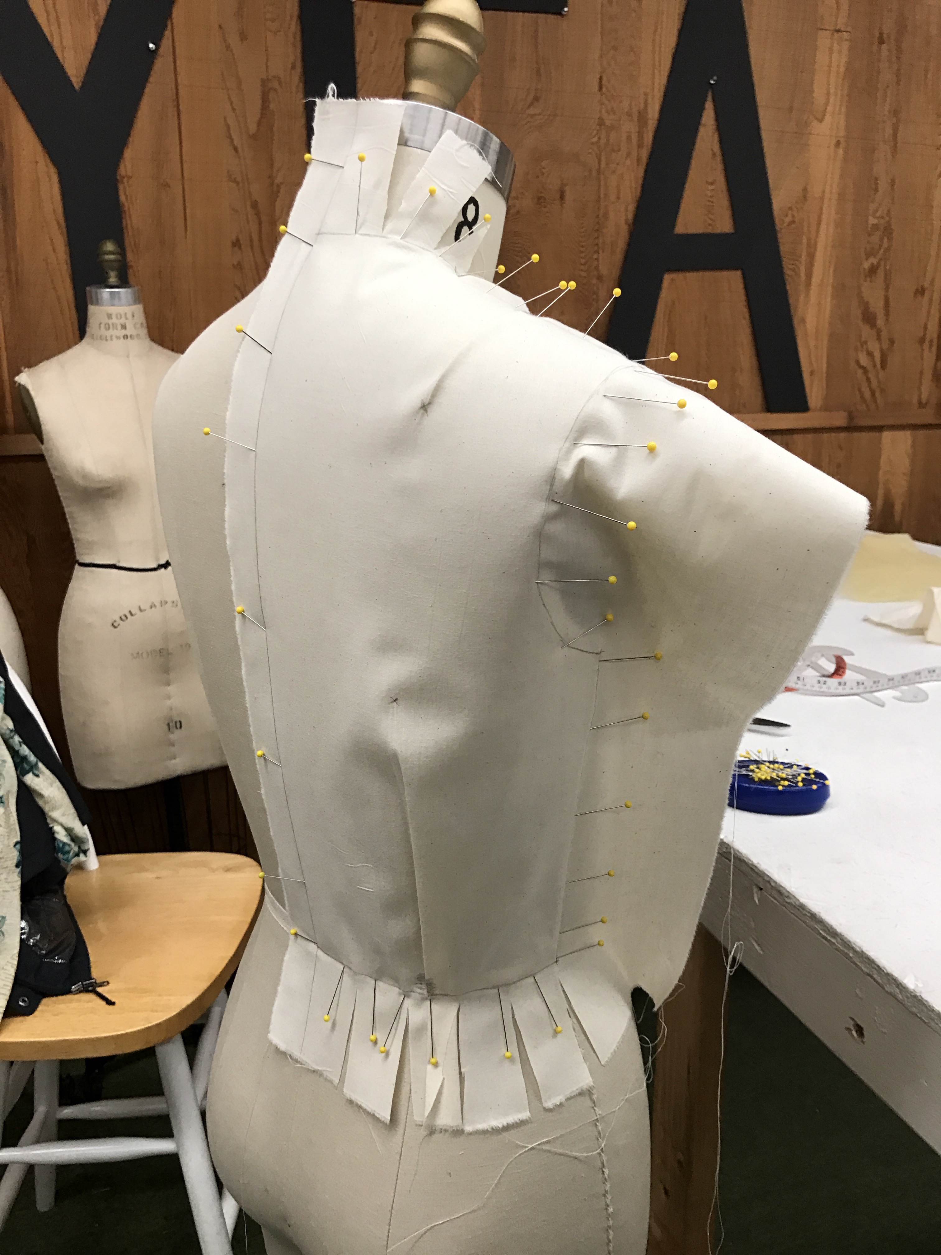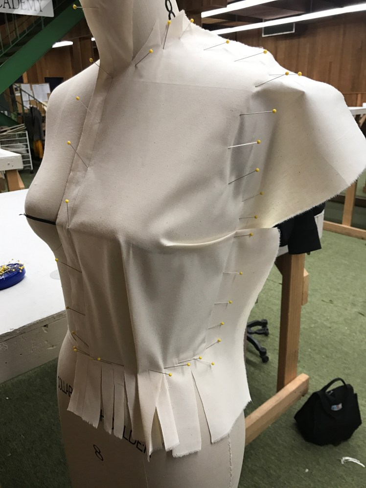 After a very brief “lecture” by the academy’s founder about the three methods of pattern making and a demonstration of draping a front bodice, we were handed pins, muslin, and a dress form. Draping could begin.