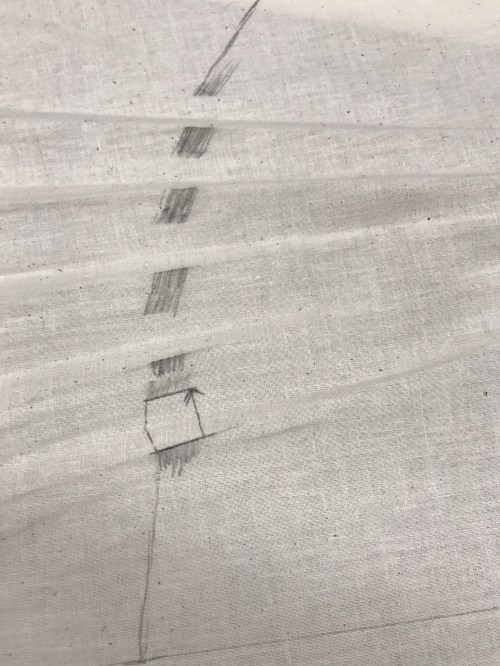 I really like tiny tucks. I’m not sure how this would look as a shirt or dress, but as a small-busted gal this kind of gathering adds volume to the chest. You might notice the pencil marks, it is to help us line up the edges of the tucks (or pleats or darts).