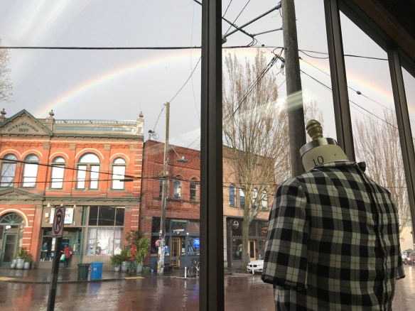 Seattle weather had been all over the board today. We were treated to a double rainbow just before the sun went down. I really do love the lighter evenings these days. The extended daylight, the delicious coffee, and doing something I love combined to make me really happy.