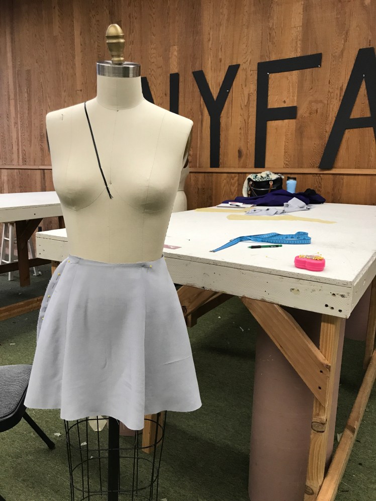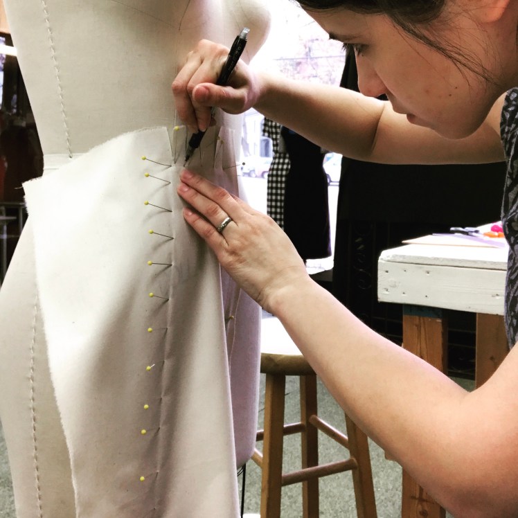 In the second draping course at New York Fashion Academy we are draping a 6-gore skirt, tracing it onto a flat pattern, and then sewing it up to confirm that we have transferred all of the seam lines correctly.