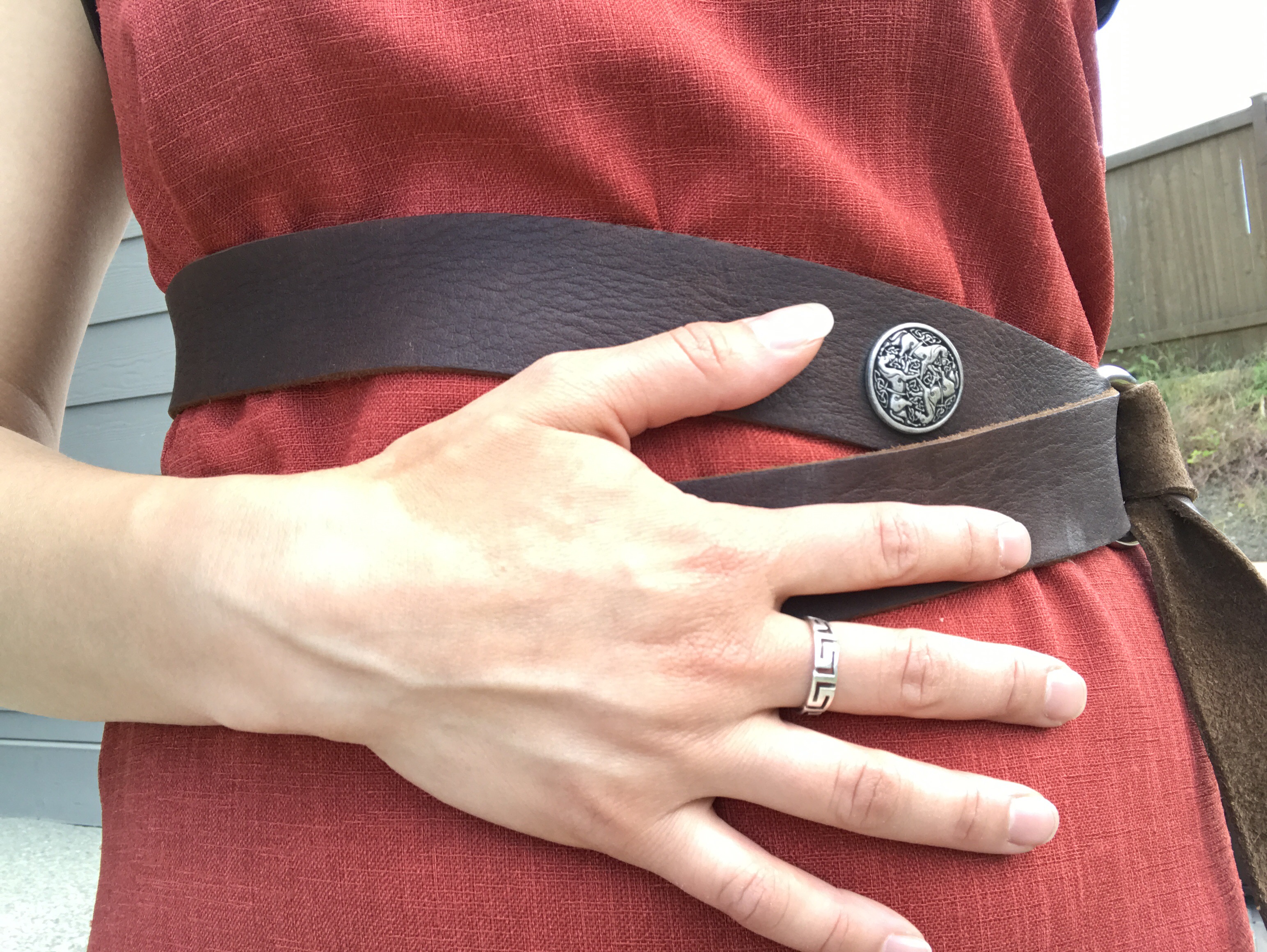 The belt was from a local RenFaire vendor and just conviently had horses on the emblem. (I think that I bought it with Rohan and Eowyn in mind.)