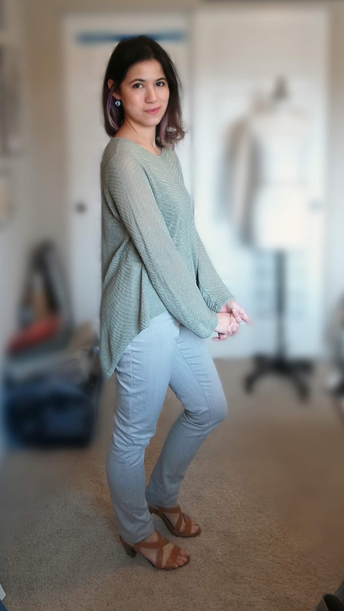 All of my existing pants are either blue denim (medium and dark washes) or black. Both are neutral colors and go with most of my wardrobe, but those dark bottoms meant that my outfits were always balanced in the same way. There are shirts and cardigans that I wear with those pants, but they don’t look great. These light gray jeans provide a different contrast of values and color with many of my favorite garments. And going into spring and summer, when lighter colors are appreciated, I’m eager to put these pants into circulation.