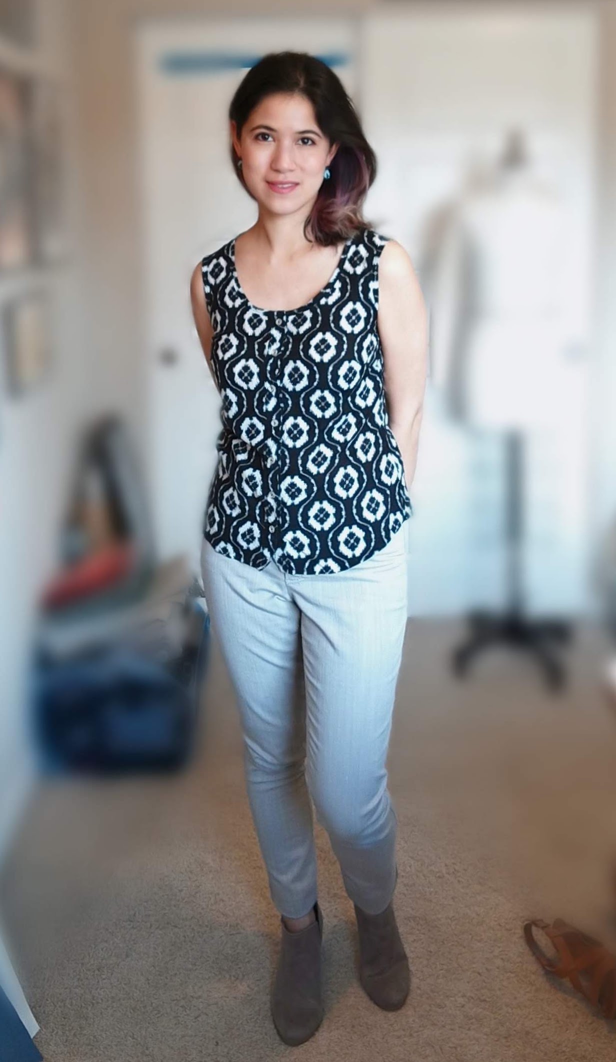 After spending 4 weeks working from home and going nowhere, I really wanted to commemorate my birthday with a present to myself. So I woke up early to attach the waistband, belt loops, and install the front button on my jeans. I was able to wear them “to work” all day.