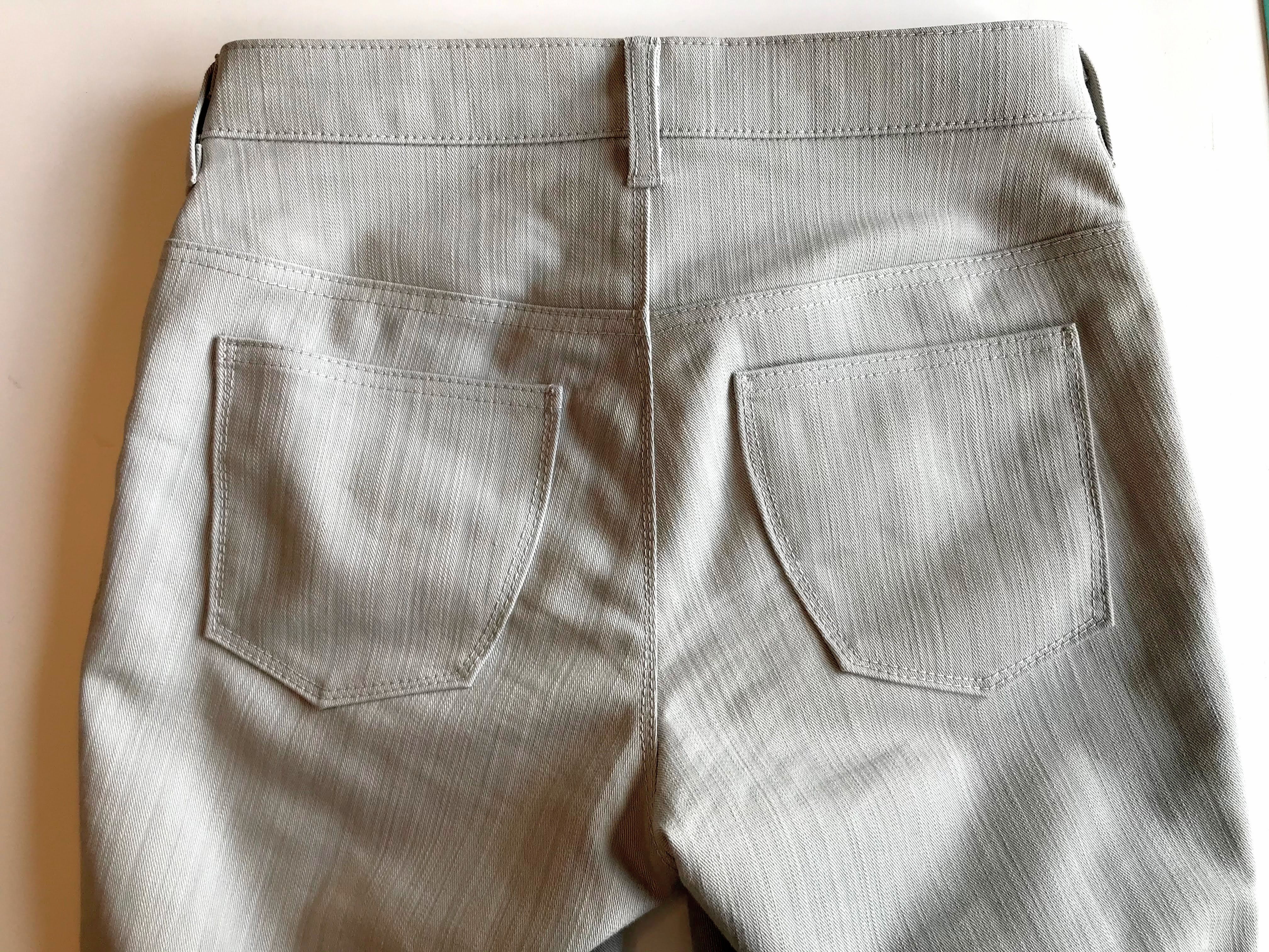 - Full calf pattern adjustment – both the knee and calf were uncomfortable on the first wear. On the second wear they are bearable, but still are too tight. Back of my knee is 7″ and back of my calf is between 7.5″ and 8″, so I need to add between 0.5 – 1″ of ease into the pattern. I have not made this pattern adjustment yet. I want to see how the size 8 pant leg compares because I want to maintain the tapered skinny pant leg while still opening up room in the calf.